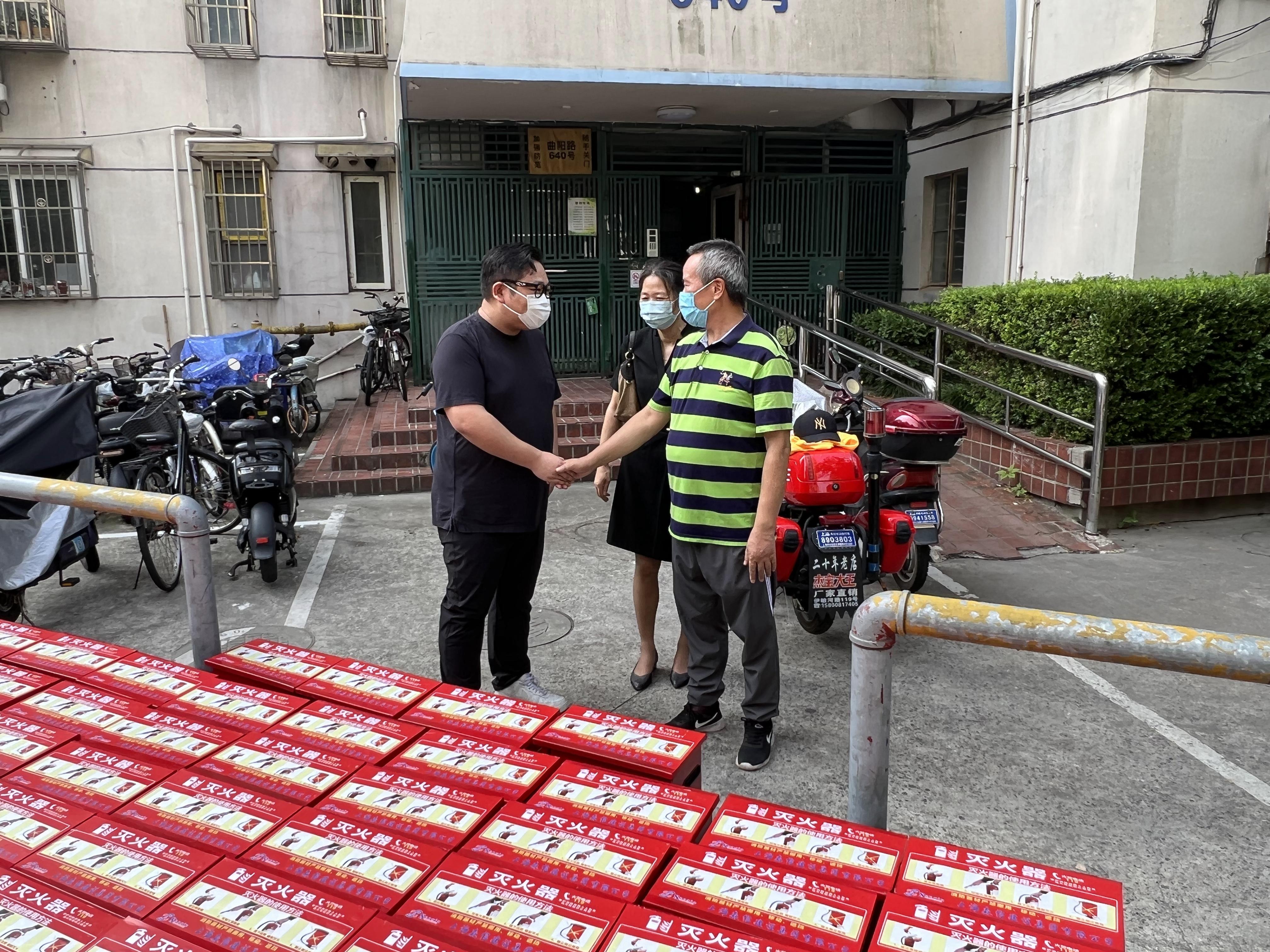 7月21日上午,虹口區(qū)人大代表、集團(tuán)總裁王銘豪向赤三居委捐贈(zèng)了168具滅火器及配套器材箱,曲陽路街道黨工委副書記陳曉峰出席捐贈(zèng)活動(dòng)。