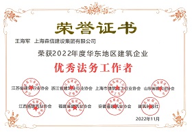 王海軍總經(jīng)理獲評“優(yōu)秀法務(wù)工作者”、森信建設(shè)獲評“優(yōu)秀法務(wù)工作團隊”